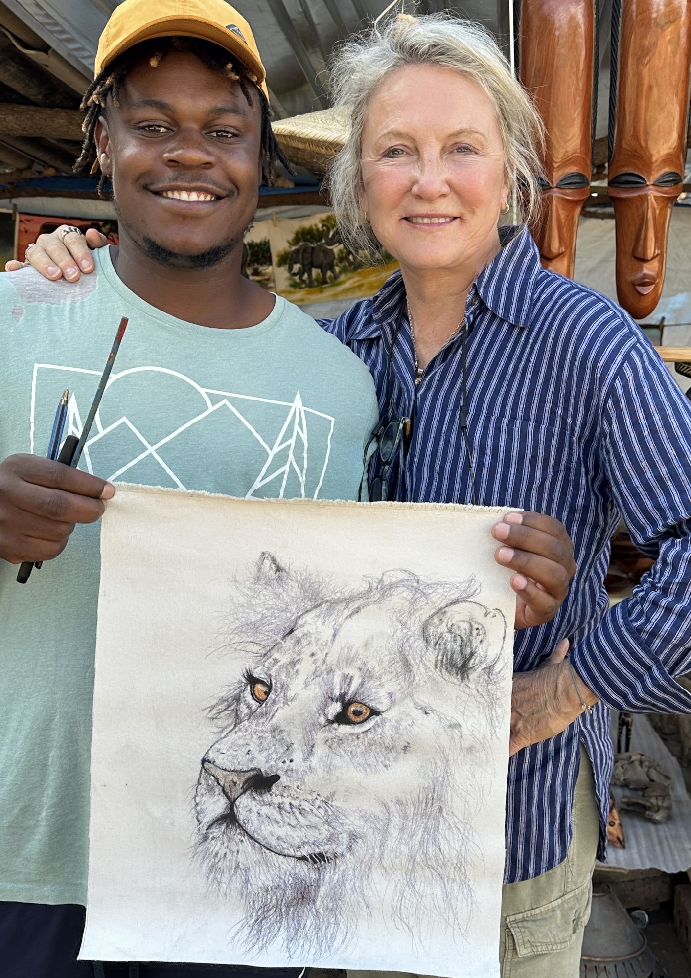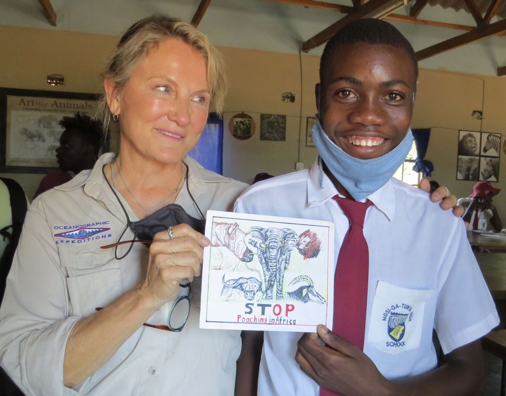 We just returned from spending almost 6 weeks in Africa, working to teach children the importance of African wildlife to their heritage, and to their future. It was an inspiring, memorable trip and we wanted to send you a short note to thank you for helping to make this trip possible. How? The support and friendship of all our friends, has always been a source of strength and inspiration for us. Our moments of shared laughter, kinship, and adventure help us get through the challenges we face in Africa and, over the years, have enriched our lives beyond measure. So although you may not realize it, your friendship and the energy and the support it generates in our lives, has been integral to our success! We want you to know that in a significant way, you also share these accomplishments. Although Anne and I arranged the main tickets to Africa ourselves, your friendship and energy helped us reach our partners in Zimbabwe and South Africa with Art supplies, teaching aids, artwork, Wildlife Protector Program elements, and Wildlife Protector wristbands.