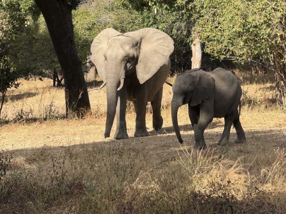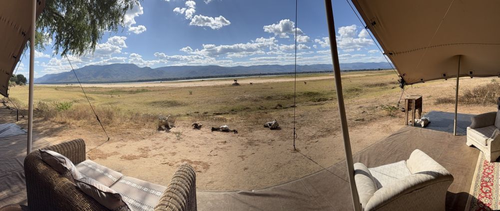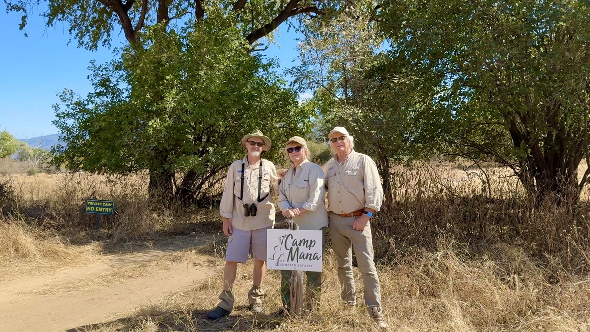 Besides working hard on Arts for Animals programs, in Zimbabwe, we managed to take two days off and visit our old friend Steve Bolnick and his wife Debbie at their camp on the Zambezi river in northern Zimbabwe in Mana Pools National Park. Thanks so much to Wilderness Air for flying us up there for free ,and for Steve's generosity in putting us up and allowing us to share his small slice of paradise at Mana pools. He runs an absolutely beautiful camp, in a the center of a world heritage site surrounded by incredible wildlife. Camp Mana focuses on a true African experience, surrounded by wildlife observed by doing game walks instead of drives. Although not a luxury camp, it's quite comfortable, and it's hard to imagine being any closer to the nature of Africa anywhere else. Camp Mana is not a luxury camp, but it's quite comfortable and we can't tell you how much we enjoy just spending time with our old friends Steve and Debbie who run the camp.