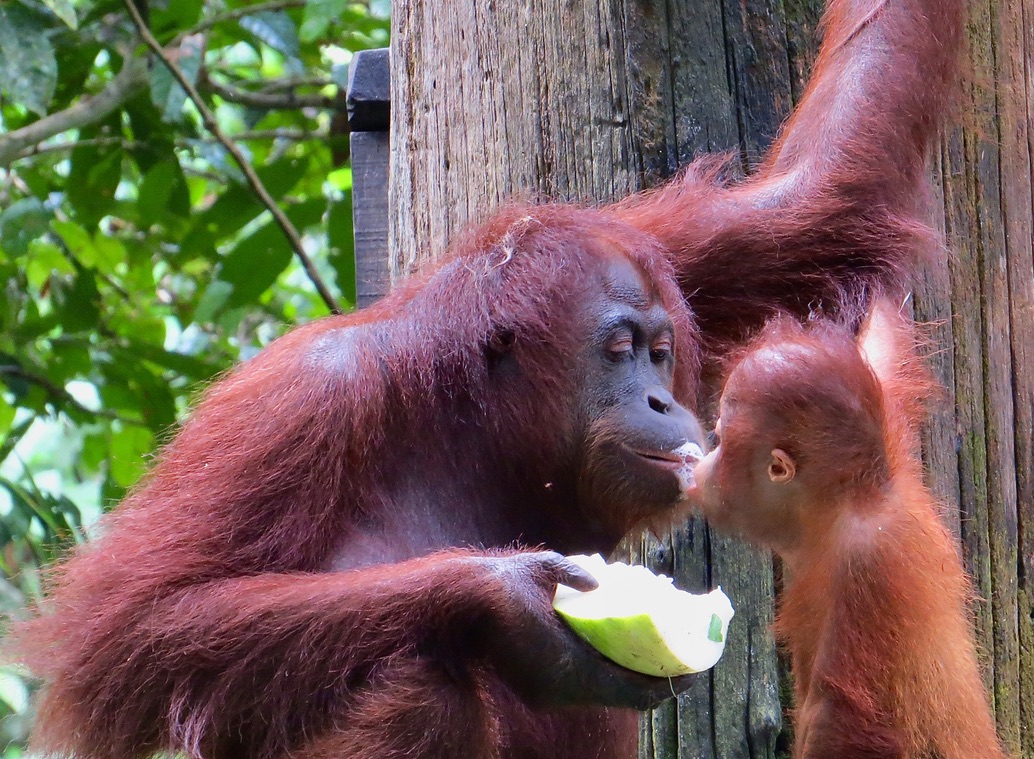 Borneo is huge! It's the third largest island in the world, and until the last two decades, was largely uninhabited. It's rainforests are literally millions of years old, unlike the rainforests of South America, which are only thousands of years old. Deep within those Rainforests, you find the reportedly smartest ape in the world, the orangutan. Orangutan literally means forest people, since their intelligence, family, life, and relationships are very much like humans. Since there are no roads in east Malaysia and Borneo, we traveled by boat up the rivers, and by four wheel vehicle, driving five or six hours, along primitive roads into Rainforests untouched by man.