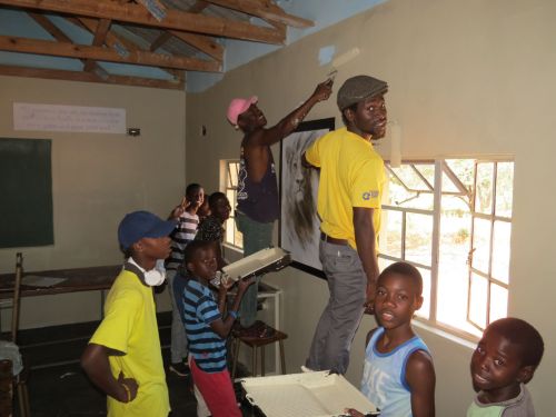 Mosi oa Tunya High school has about 1500 students but, due to the political situation and poverty in Zimbabwe, they have little in the way of teaching resources. We kept hearing about how much the children there wanted and needed some form of creativity in their curriculum. At first we were simply going to put up some artwork but soon realized that the entire room needed a makeover. The students and staff were wonderful, coming in on their day off to help repaint and turn the room into an inspirational art center focusing on their local wildlife and wildlife conservation.