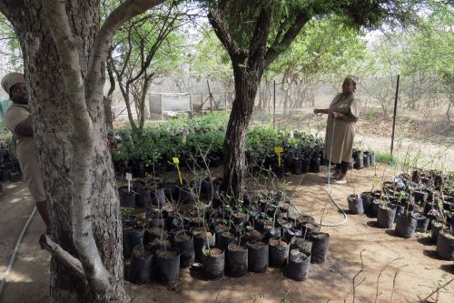 The children also learn agriculture and, as shown here, grow trees to replace forests damaged by elephants
