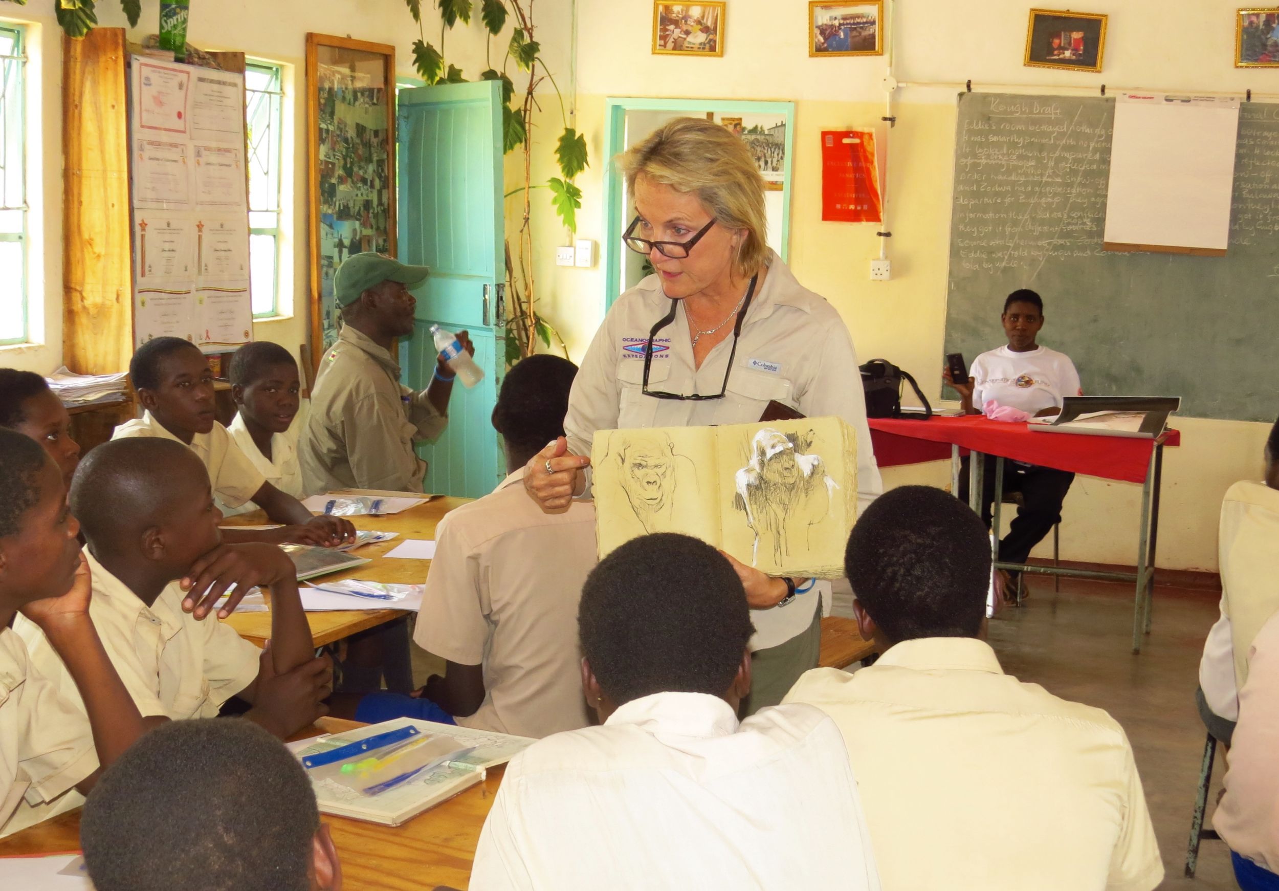With Anne's background, she is able to mentor the teachers to help the students understand the basics of drawing as well as important conservation messages.