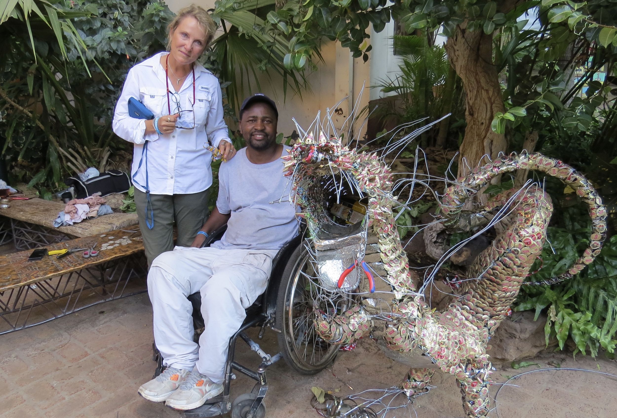 This is Ishmael, a physically challenged artist who does incredible things with pieces and parts of aluminum cans and refuse