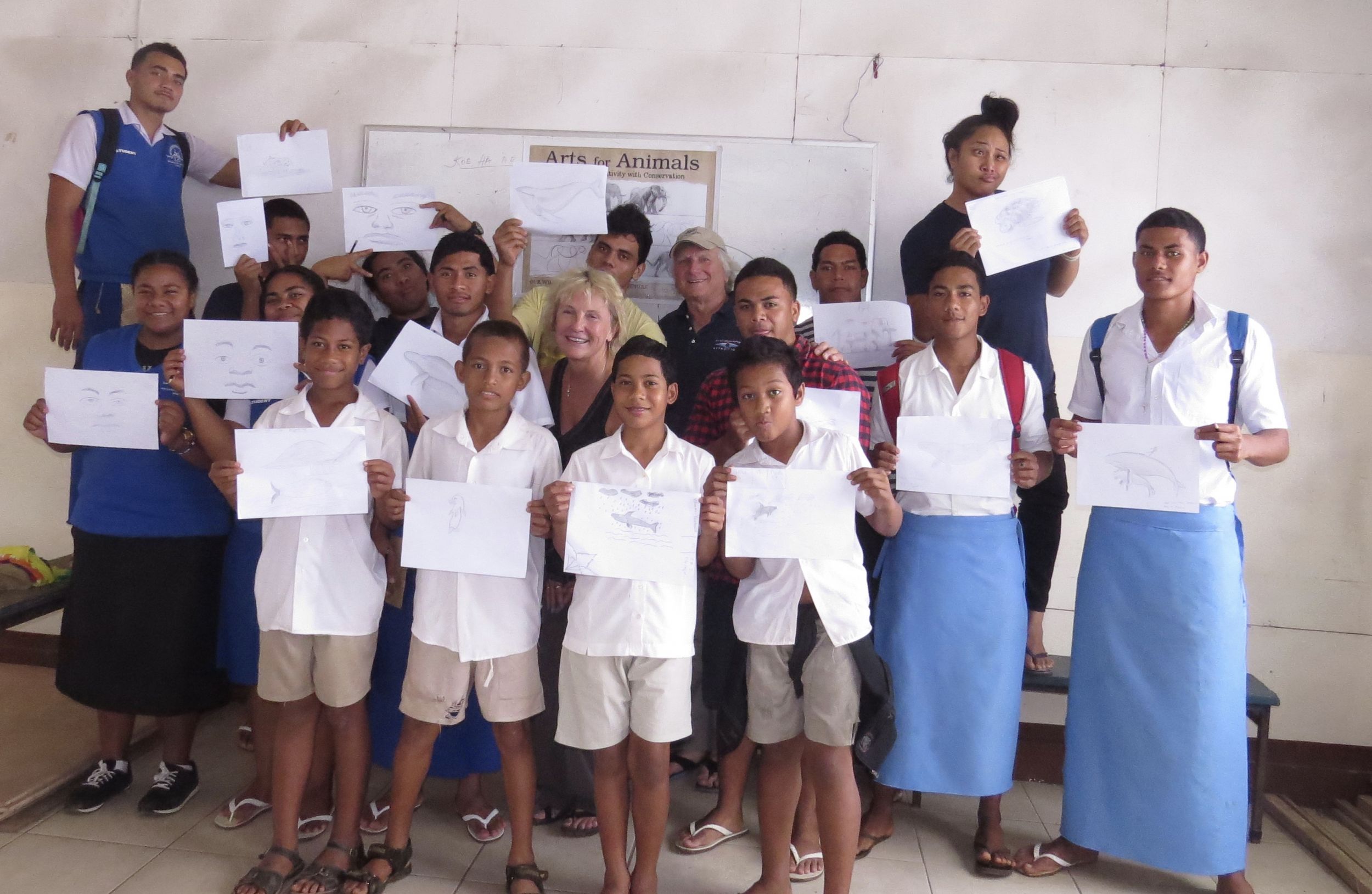 Jim and I began in 2011, just as two earthlings who were willing to try to make a difference by using art to teach conservation to the children we met on our travels. Before long, we realized many others shared our concerns and also wanted to personally take some action to protect the future of our planet. To encourage and help those folks make a difference, we created this nonprofit, Arts for Animals, Inc.