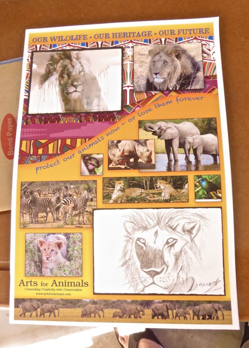 These funds also help artists, who pay their own way from the United States, to share their individual talents and passion for art with African children. We leave lesson plans with local teachers to continue the conservation and artistic lessons taught by these artists. These are lessons that can change the lives of these children and the future of endangered wildlife in Africa.