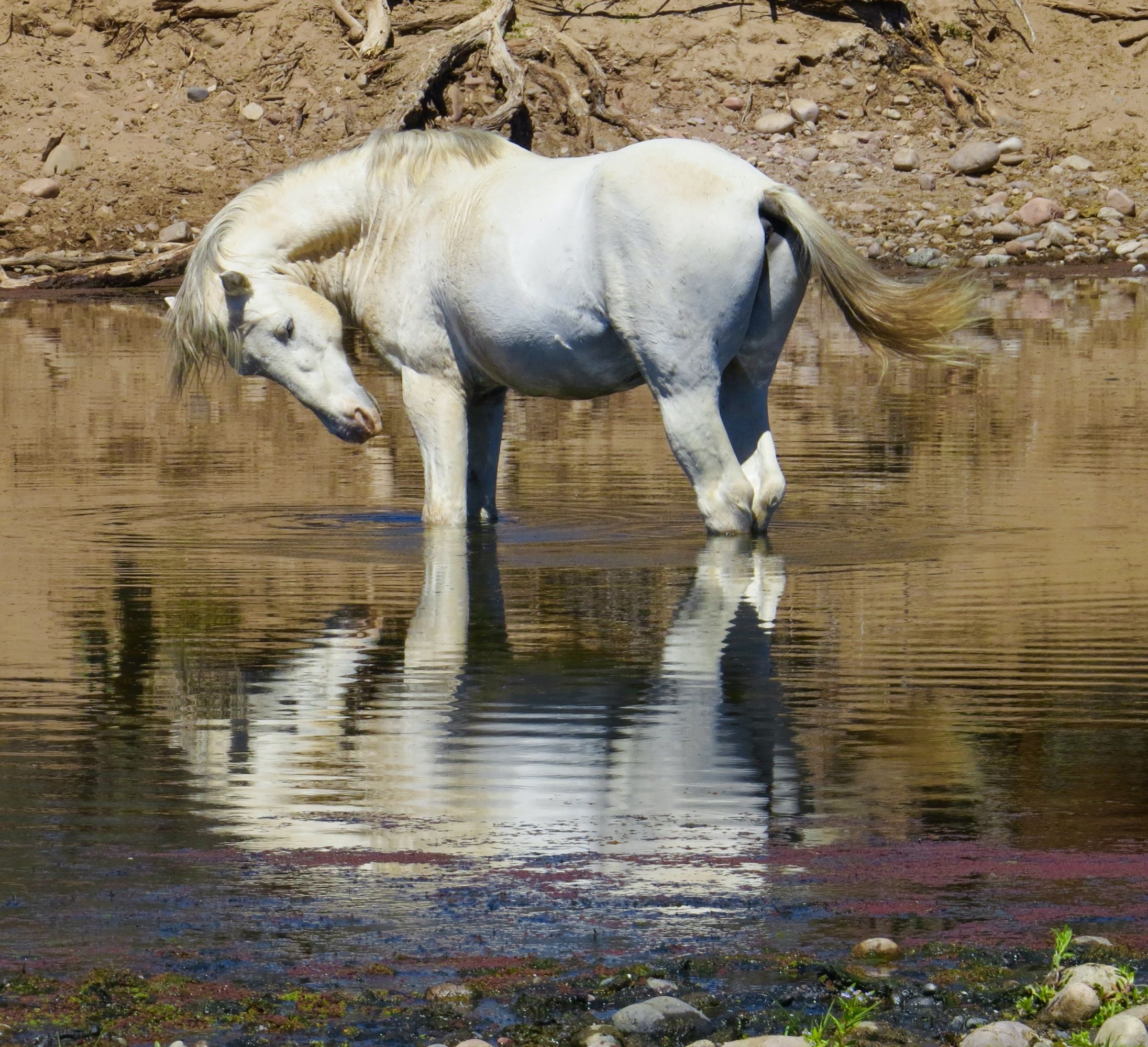 Of course, I was certainly honored and excited to get the Artists for Conservation," Simon Combs Award "-which is their highest honor for my work creating , with Jim, ARTS FOR ANIMALS- the most remarkable part of this adventure for me was a hike we did in the Arizona desert with Jan and Wally in a wild horse sanctuary area near the Verde river. After hiking across the dry desert landscape about an hour ,we reached the Verde River and discovered we had happened upon a herd of about 60 wild horses! Unbelievable! You would think, after walking safaris in Africa, coming up on herds of elephant, Cape buffalo and giraffes, seeing these wild horses wouldn't be so awesome. But they definitely were one of the thrills of my life!
