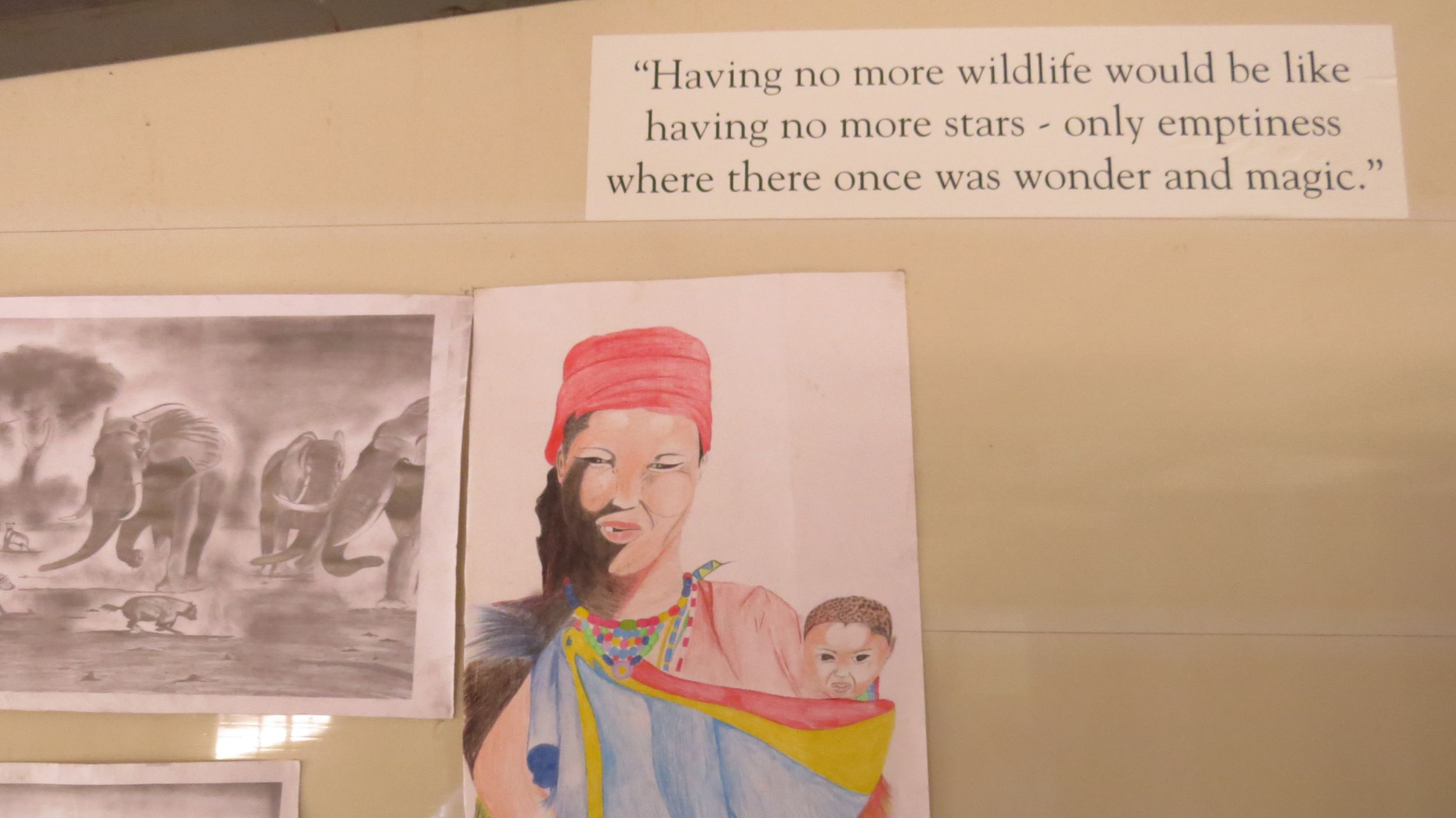 Besides bringing much-needed art supplies and wristbands to our partners there, we convinced the administration at the Mosi oa Tunya ("Smoke that Thunders"-the native mane for" Victoria Falls") High School to change their "Arts and Crafts" Building to an "ARTS AND CONSERVATION" building! Focusing the building more on wildlife conservation meetings, Ecoclubs, and Wildlife Conservation lectures and activities! Together, with our friends with " Children in the Wilderness" and the School headmaster, we are all looking forward to more opportunities at MOSI and at other Zimbabwe schools to extend wildlife conservation education opportunities to kids! We are anticipating that more schools in the Zimbabwe system will follow this lead.