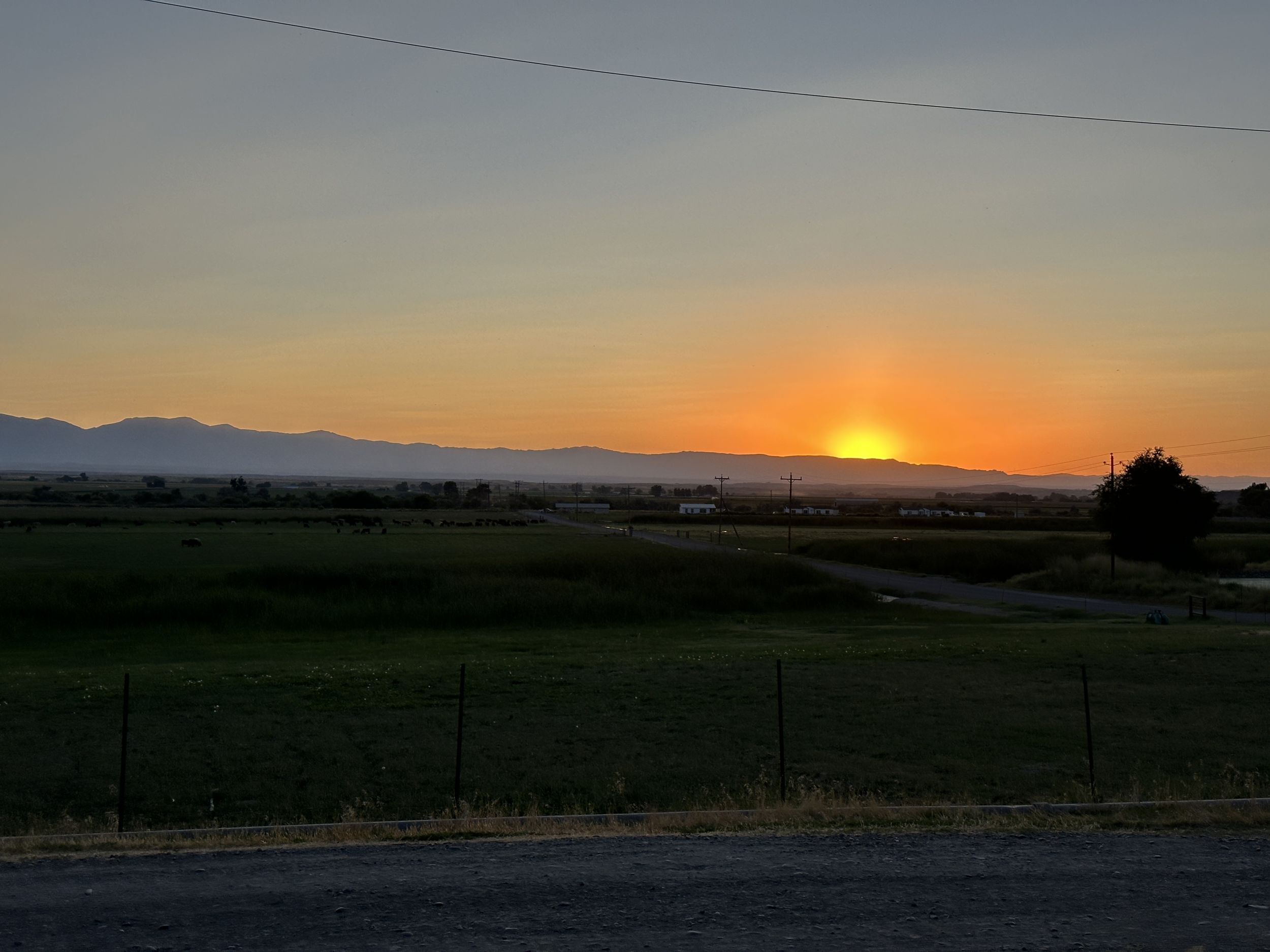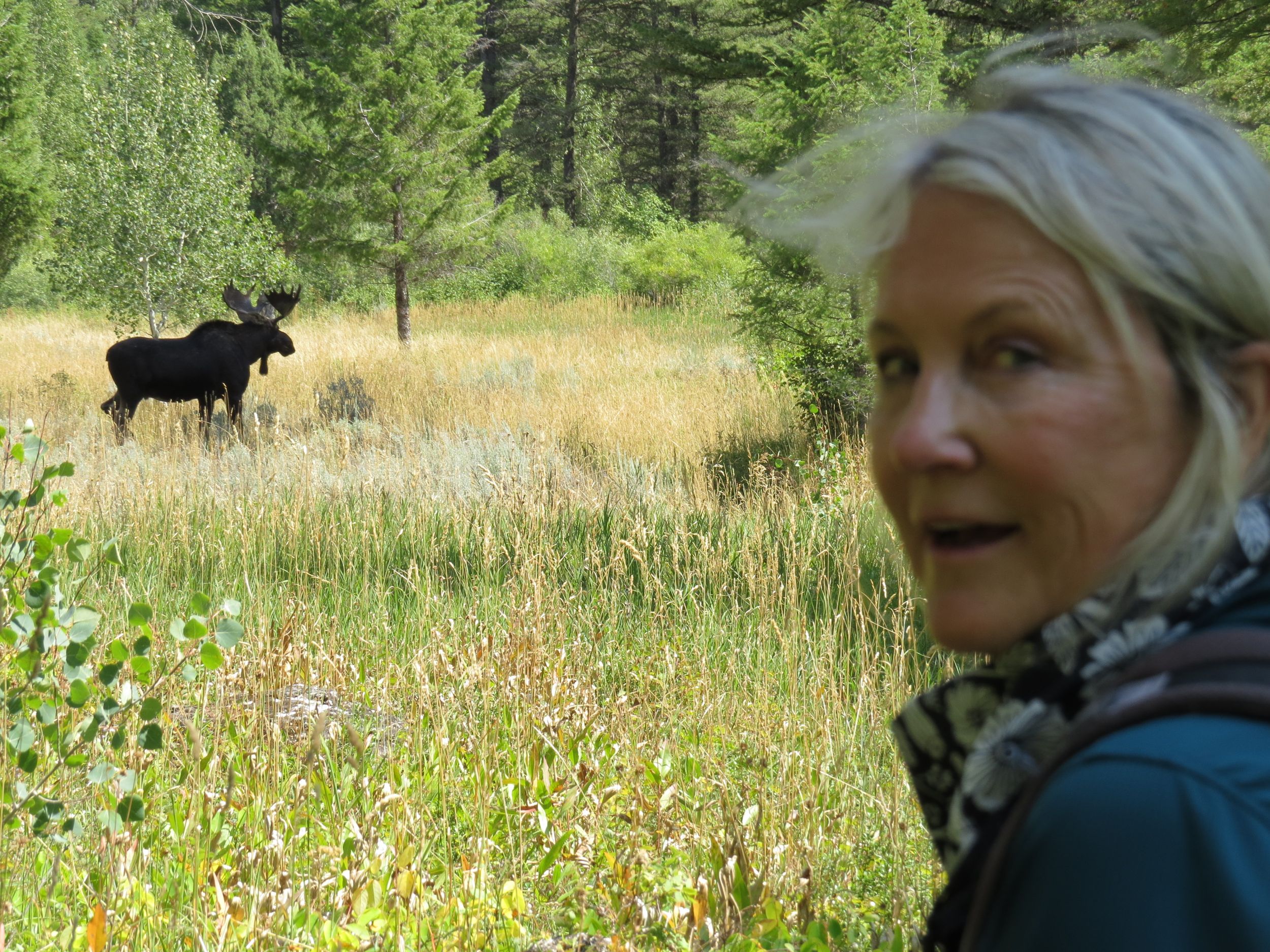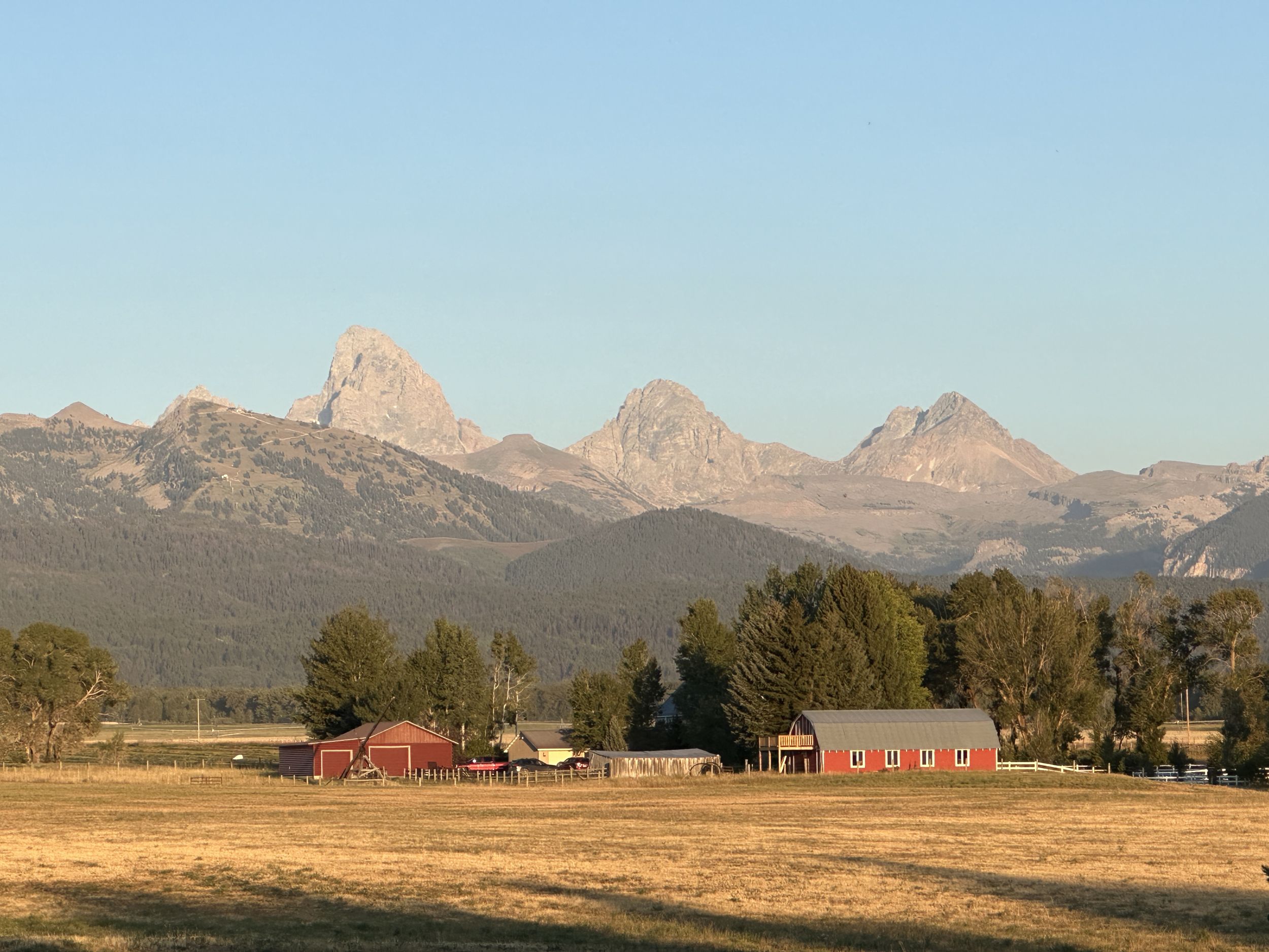 Although the Rockies are really beautiful in the summer, it was hot even there, and after dropping off a piece near Steamboat Springs, we headed up north to Tetonia ,Idaho to stay with our old friends Don and Leslie Roth. We rent a beautiful little house from them overlooking hay fields, mountains and in the distance, of the Teton mountains.