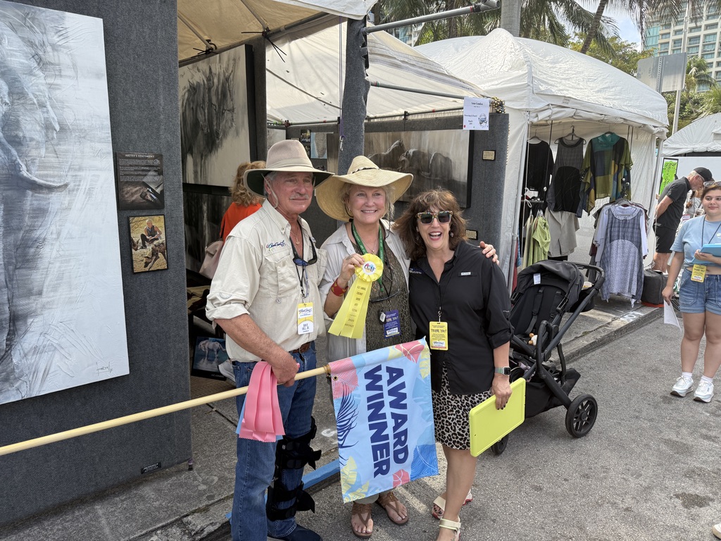 Our art show season began in Coconut Grove, Miami. We had gorgeous weather, and got to see lots of our old friends! I even won third place in the art competition at the show. I can't believe my work was chosen over 250 other artists! It was quite an honor, as well as quite an experience as they presented the award to me carried by a bagpipe troop playing loudly.