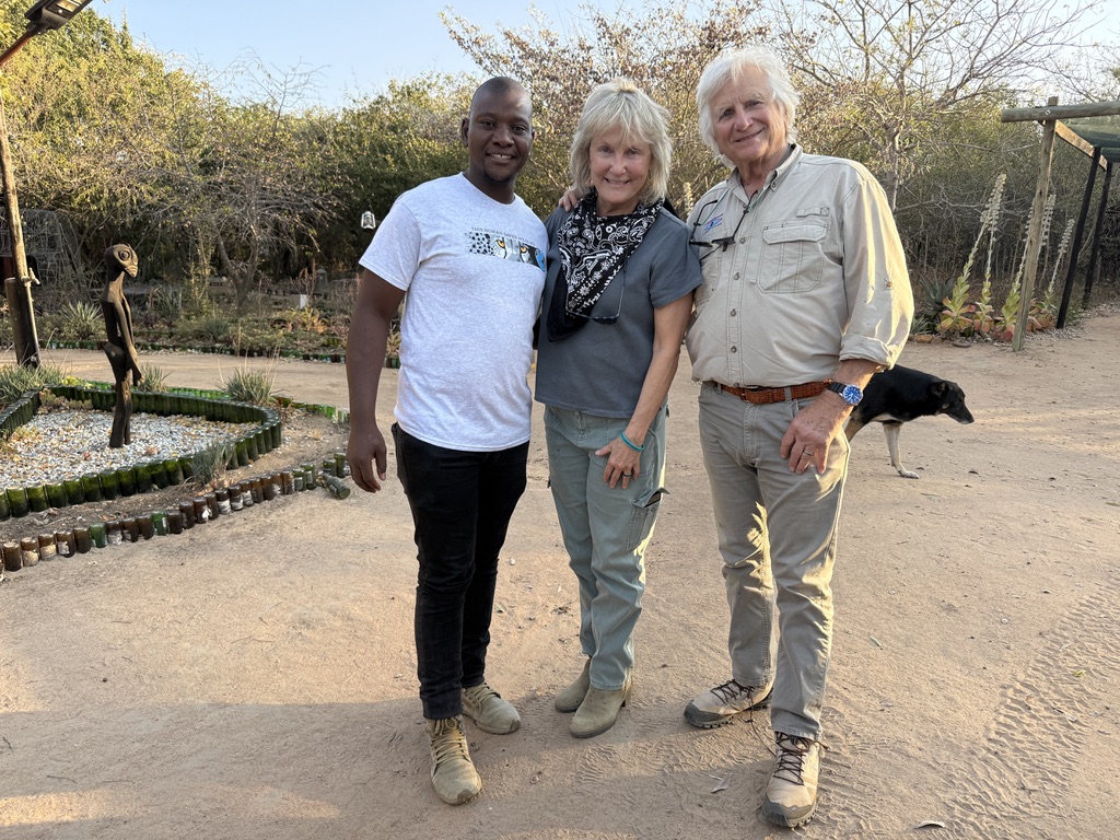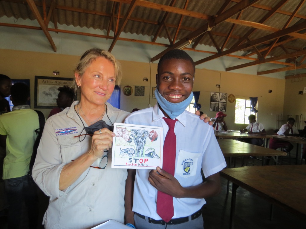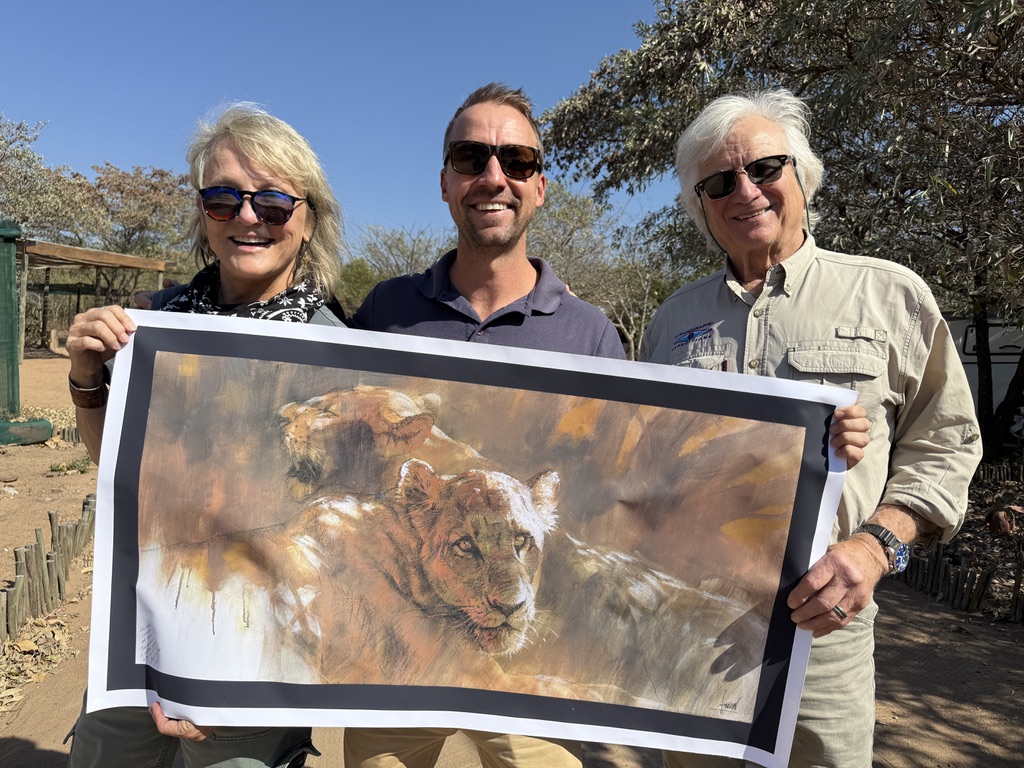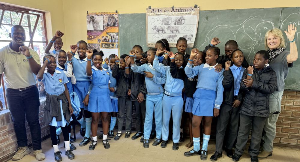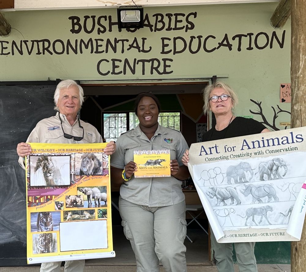 We just returned from spending almost 6 weeks in Africa, working to teach children the importance of African wildlife to their heritage, and to their future. It was an inspiring, memorable trip and we wanted to send you a short note to thank you for helping to make this trip possible. How? The support and friendship of all our friends, has always been a source of strength and inspiration for us. Our moments of shared laughter, kinship, and adventure help us get through the challenges we face in Africa and, over the years, have enriched our lives beyond measure. So although you may not realize it, your friendship and the energy and the support it generates in our lives, has been integral to our success! We want you to know that in a significant way, you also share these accomplishments. Although Anne and I arranged the main tickets to Africa ourselves, your friendship and energy helped us reach our partners in Zimbabwe and South Africa with Art supplies, teaching aids, artwork, Wildlife Protector Program elements, and Wildlife Protector wristbands.