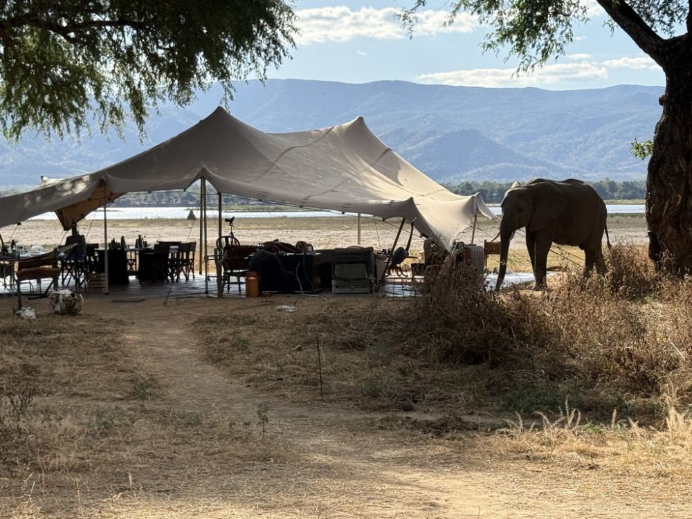 Besides working hard on Arts for Animals programs, in Zimbabwe, we managed to take two days off and visit our old friend Steve Bolnick and his wife Debbie at their camp on the Zambezi river in northern Zimbabwe in Mana Pools National Park. Thanks so much to Wilderness Air for flying us up there for free ,and for Steve's generosity in putting us up and allowing us to share his small slice of paradise at Mana pools. He runs an absolutely beautiful camp, in a the center of a world heritage site surrounded by incredible wildlife. Camp Mana focuses on a true African experience, surrounded by wildlife observed by doing game walks instead of drives. Although not a luxury camp, it's quite comfortable, and it's hard to imagine being any closer to the nature of Africa anywhere else. Camp Mana is not a luxury camp, but it's quite comfortable and we can't tell you how much we enjoy just spending time with our old friends Steve and Debbie who run the camp.